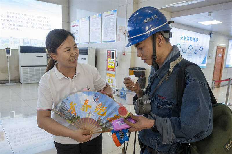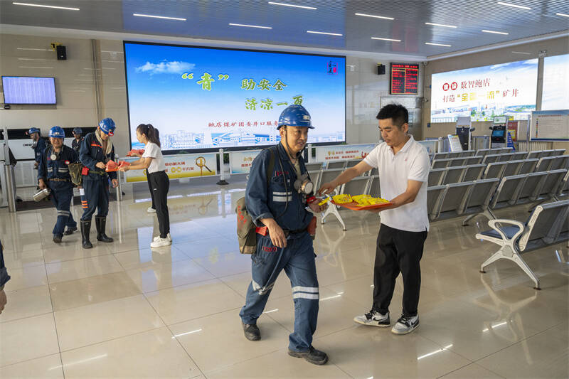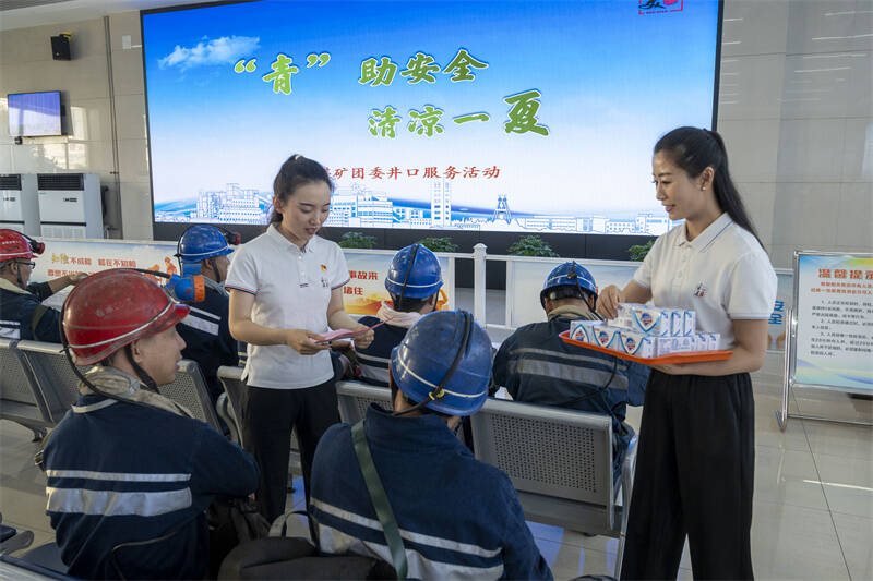 连续的高温天气,让矿区开启盛夏“火炎焱燚”模式,近日,鲍店煤矿团委在井口候罐大厅举办“青”助安全 清凉一夏井口服务活动。