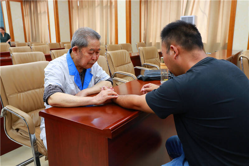 讲座结束后,两位中医专家现场开展了义诊活动。他们认真倾听每一位职工的病情陈述、望闻问切,仔细检查,耐心解答疑问,并根据每个人的身体状况,给出了具有针对性的中医调养建议。