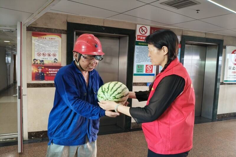 “天气炎热,正好收到你们送来的西瓜,不仅解了渴,心里都凉快了!”刚刚还在维修的职工师傅接过爱心西瓜高兴地说道。