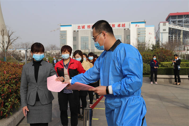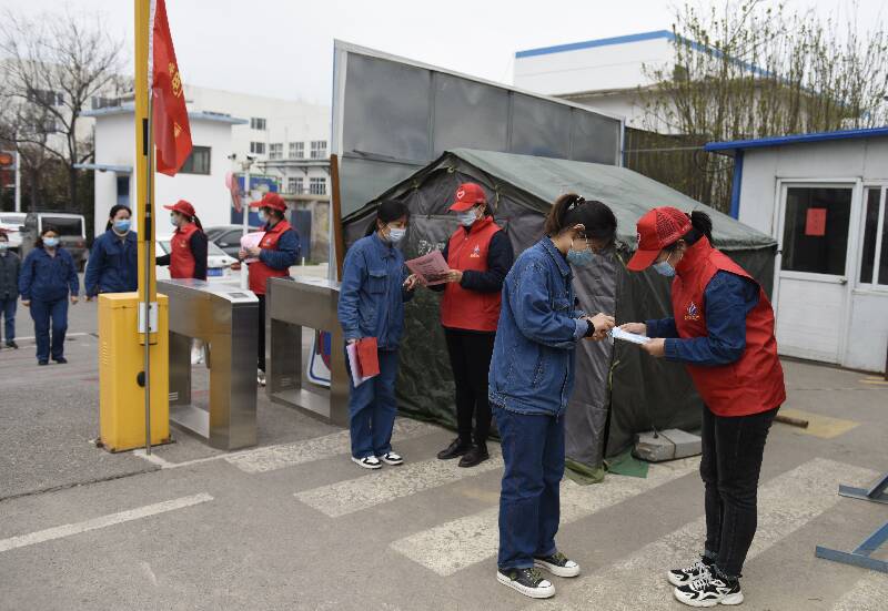 服务保障“干”起来。在各生产岗点、厂区门口等人流密集场所,青年志愿者们积极配合门卫人员做好人员组织、秩序维护、扫码登记、测量体温等工作,引导职工有序排队,提醒大家戴好口罩,保持一米距离,尽最大努力把疫情风险阻止在外。