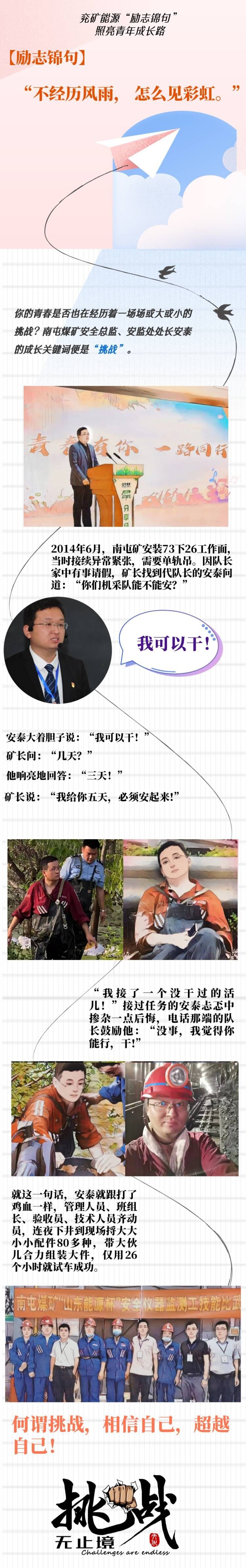 不负青春、不负韶华,为兖矿能源高质量发展贡献青春力量。立足岗位、脚踏实地,用实干和担当传承“兖矿精神”,将兖矿能源改革发展事业不断发扬光大。