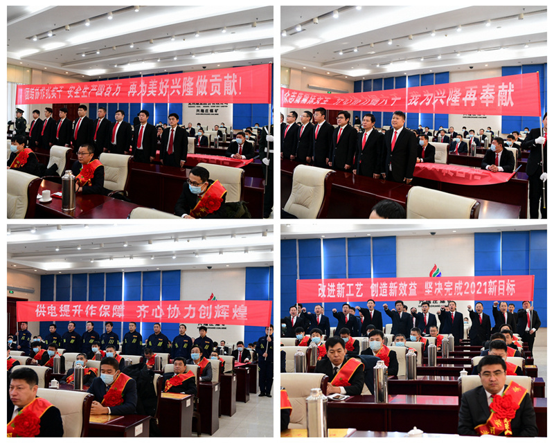 1月1日上午,在兴隆庄矿召开的2021年安全生产工作会议上,基层单位台上发言慷慨激昂、铿锵有力,台下目标招展、呼号嘹亮。