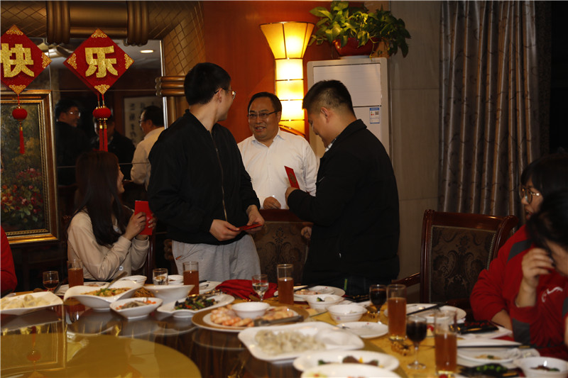 19:05,一桌丰盛的年夜饭准备好了。这个矿矿长也来到现场,分享了自己的成长经历,为大家送上新年的祝福。这个矿党委副书记、工会主席、纪委书记为新入职员工发放了新春红包。每个新入职员工还收到了这个矿准备的贺岁电影票和小礼物。