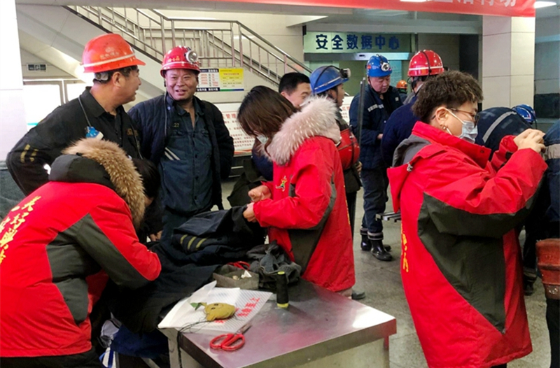 “春寒料峭,井口这么冷,感谢你们在这里帮我们缝补衣服,辛苦了!”“这个缺了的扣子缝好后,我们在井下干活的时候,身上暖和了,工作中也更安全了!”兴隆庄矿井下职工接过女工协管员缝补好的衣服,露出憨厚的笑容。