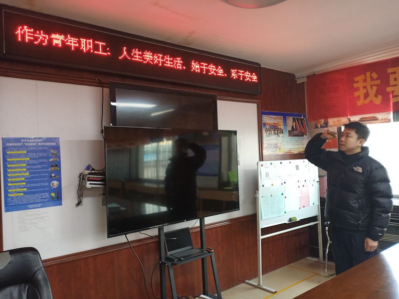 “有氛围更要有实际行动。我坚决执行规程措施,将安全责任落实在岗位、在流程、在细节,做好自我规范、自我约束、自我保安、自我评定、自我展现,坚决把各类隐患消灭在萌芽状态,坚定不移抓好班组安全生产工作”正在参加安全宣誓的工区班长陈彦超铿锵有力地说。