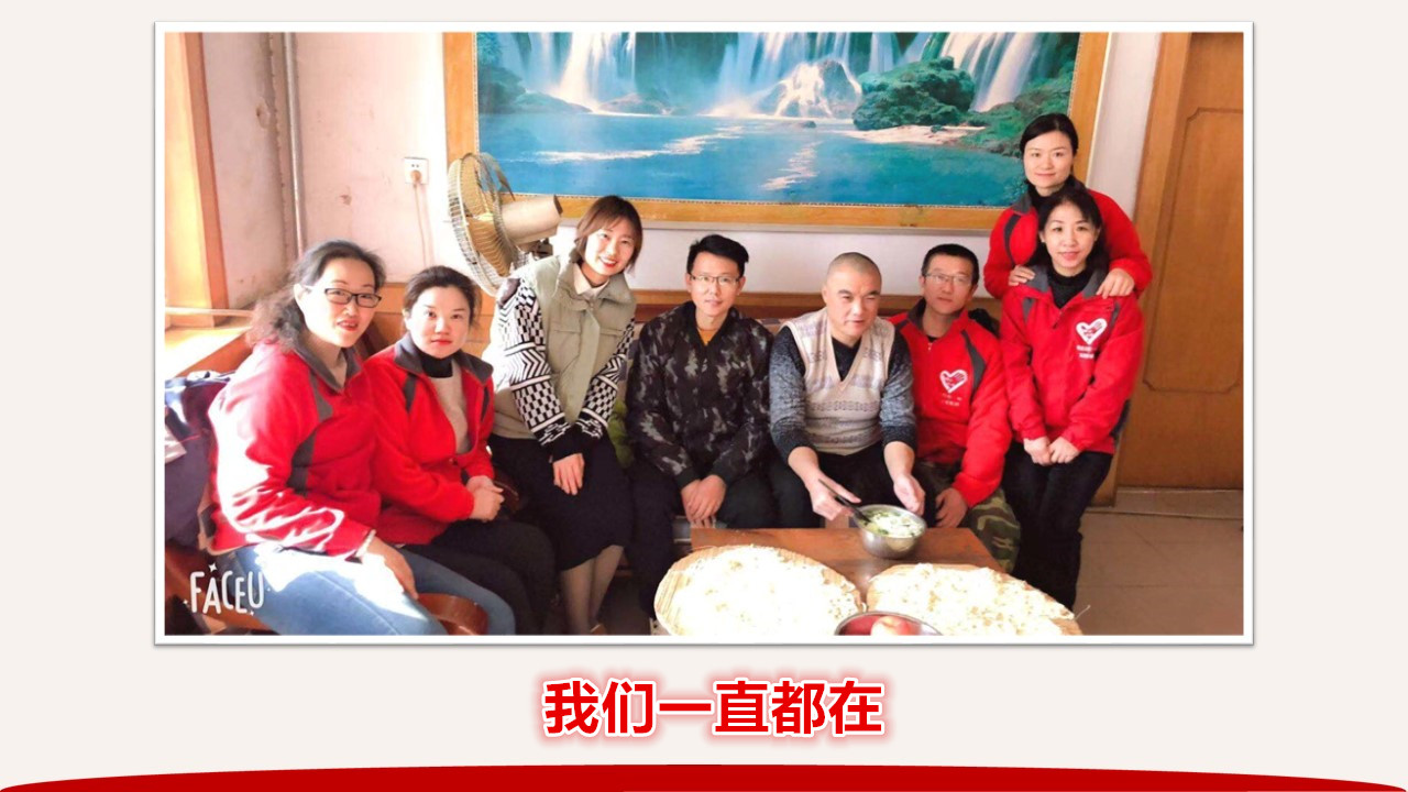 只要赵大哥一个电话,立即调动所有资源,任何事情都在第一时间协调落实,尽我们所能以最快捷最有效的缓解赵大哥的每一次求助。慢慢的,赵大哥成了我们小组所有人心中的牵挂,由原来的“临时家人”慢慢的就像自己的亲人一样,彼此挂牵。