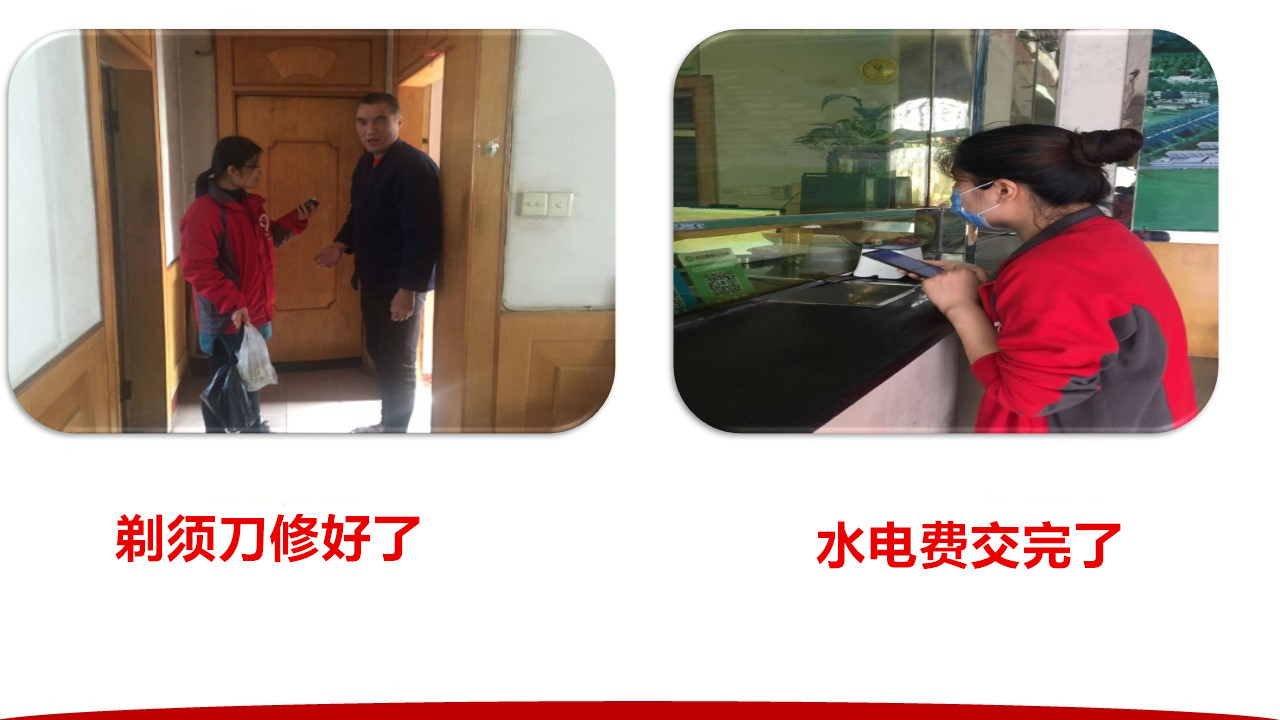 他(她)们既是本职工作的业务骨干,又是党员志愿者的带头人,在暖心志愿服务中发挥着1>N的领头雁作用。每名党员在活动中带领一个帮扶小组,定期不定期深入到社区、家庭中,通过一项项贴心服务,汇聚“微力量”,传递“正能量”,党员“红色细胞”的先锋模范作用在暖心志愿服务的一次次实践中得到了充分彰显。