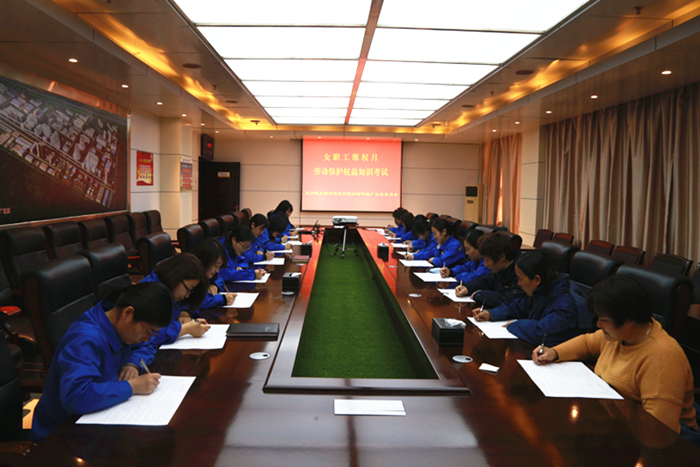 女职工劳动保护权益知识考试。编制女职工劳动保护权益知识试卷,组织各基层分会女工负责人及女职工代表20人参加了集中考试,基层分会利用班前班后会组织女职工法律知识答题。考试结束后,大家围绕如何保护女职工合法权益座谈交流,为女职工发放护手霜,送上组织的关爱,为女职工缓解工作和生活压力,增进女职工幸福感和获得感。
