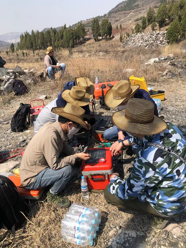 在炎炎夏日下,野外勘探队员的勘探工作非常辛苦。当时野外工作环境极为恶劣,多为山地,海拔落差超过200米,野外最高温达到37℃。队员们在野外施工时,背包里要装着罗盘、皮尺以及重量超过10公斤的物探仪器设备,翻山越岭,早出晚归,风餐露宿。从一座山到另一座山,从一道水到另一道水,仅用了5天时间,踏遍了勘探区的条条沟、道道梁,采集到了大量的野外物探数据。由于甲方要求工期紧,孙文斌带领团队加班加点,高质高效的完成了后期数据处理和成果报告编制,得到了甲方一致认可,为山东高速修建马山隧道提供了安全保障。(南美公司 王 智 提 供)