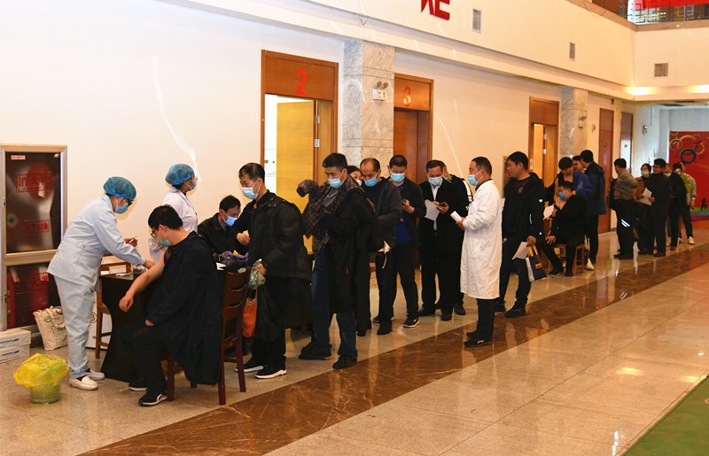 “您有没有对什么药物过敏?” 在疫苗接种现场,医务人员耐心询问职工既往病史等信息,确认是否适宜接种疫苗,并对符合条件者进行现场签署《新型冠状病毒疫苗接种知情同意书》。在接种过程中,医务人员严格按照新冠疫苗接种流程和技术规范进行操作,接种完成后的职工,由医务人员引导至留观区,留观30分钟无异常反应后方可离开。