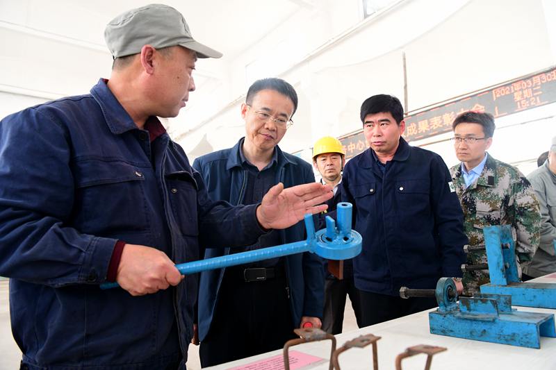 “这套玉琪水管钩挂件钻孔装置,解决了人工钻眼效率低、危险系数大的难题,钻孔测量误差小,也降低了劳动强度。”“这套立凯钢筋梯模具平台,根据焊接工的身高定做,改善了职工长时间弯腰损伤腰椎。加上固定钢筋的模具,可以使每条钢筋都卡在模具里来达到焊接成品的标准”……3月30日,在兴隆庄矿生产服务中心铆焊车间明亮宽敞的厂房里,以申报人命名的11项创新创效成果正在进行集中展示,用工友们的话说,“这些日常工作实践中摸索出来的小创新小发明,实用、可靠、省时省力,关键还出活儿。”
