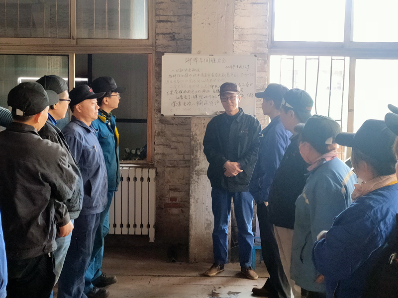 8:15--8:30刚刚开完厂部班前会的各车间主任分赴各车间召开车间班前会。同时,针对本车间业务范围由技术员进行专业知识培训。技术员将每天一个知识点,将刻板的专业知识转化为简单易懂的语言,方便职工记忆理解,提升作业人员自我防范能力。