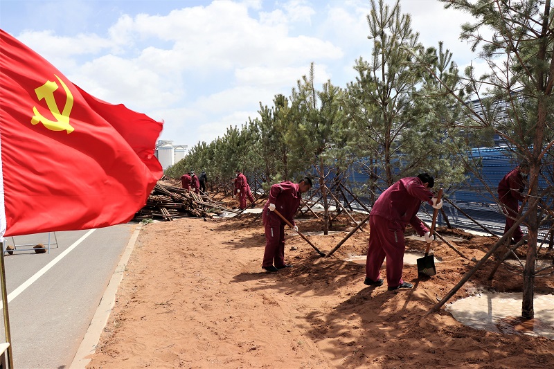 这个矿针对内蒙冬季时间长、气候寒冷干燥、春季风沙大、全年降水少,矿区地处毛乌素荒漠腹地,生态环境脆弱的实际,积极落实驻地提高林木覆盖率、改善生态环境质量、打造区域生态区,实现林业生态经济的可持续发展的号召,着力改善驻外干部职工工作生活环境,全面推进绿色矿山建设。发动干部职工在工作之余共同参与、全员动手,开展植树种绿活动,在矿内工广区实施景观绿化,在矿区外围进场公路、运煤公路、铁路专用线及装车站、矿井至铁路装车站带式输送机栈桥、回风井等所辖区域实施植树造林、森林抚育、退化土地修复。今年以来,平均每天参加植树劳动的党员干部职工20人,出动挖掘机、装载机、吊车、洒水车等20余台套,推动了春季造林工程施工整体工作稳步加快推进。截至目前,进场道路景观带造林面积17.96公顷,矿区周边绿化8.04公顷,累计种植樟子松、柳树、国槐、桃树等树木2万余株,形成了植被低、中、高错落有致、品种不同,春有鲜花、夏有绿荫,秋有硕果,四季常绿,充满温情的大家园。