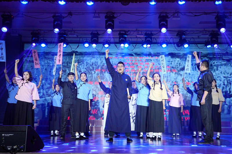 演诵会现场高潮迭起,精彩纷呈,气氛浓烈,在全场高唱《没有共产党就没有新中国》的歌声中落下帷幕。