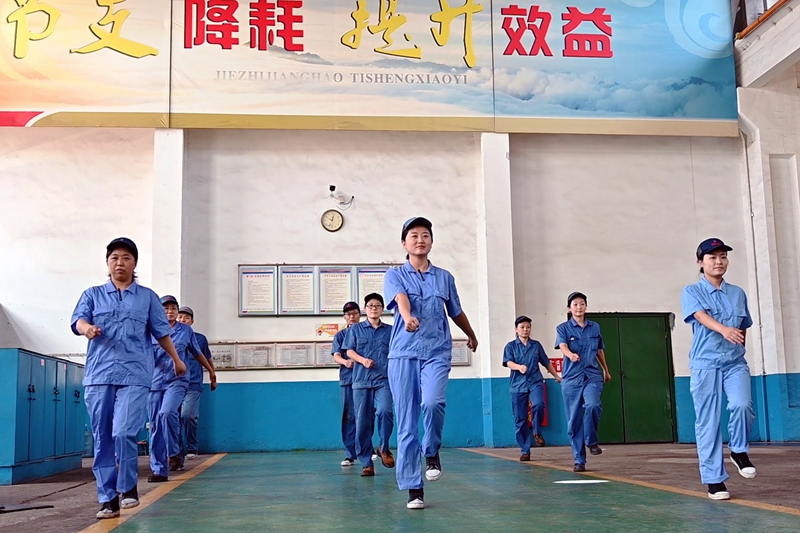 每天的九点三十到四十,大家在优美的音乐声中整齐地进行工作操训练,良好的精神风貌、整齐划一的动作,成为各车间厂房内一道道靓丽风景。工间操活动给大家提供了一个非常好的锻炼机会,既能劳逸结合,提高工作效率,又能增强体质,体现了这个矿“健康同行 发展共赢”的健康企业文化理念,突出健康企业创建工作的群众性、参与性、健身性和趣味性,激发广大职工以更加饱满的工作热情和昂扬的精神状态推动矿井各项工作顺利开展。
