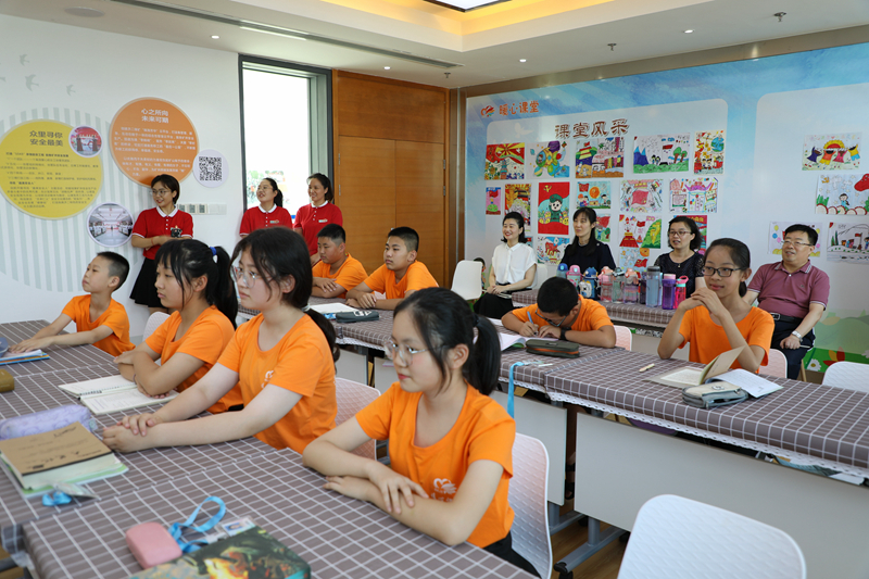 7月26日,在该矿党群服务中心,一个个背着书包的孩子们,在矿巾帼暖心志愿者的引领下,纷纷来到“暖心课堂”开始度过他们的暑期时光。