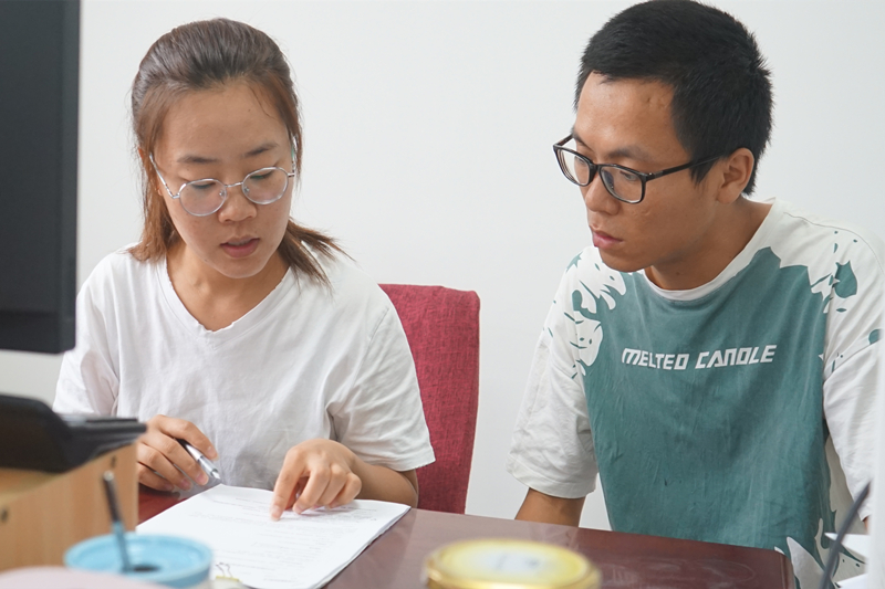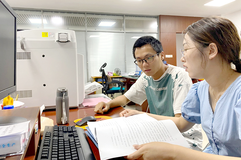 下午,主攻人力资源专业的新员工陈浩浩来到党委组织部(人力资源),向两位入职两年的学姐了解人资方面的工作。