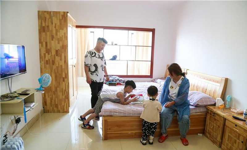 2015年4月17日早上6点,她带着行李登上了开往转龙湾煤矿的大巴车, 2016年10月,她的老公和大伯哥也报名来到了转龙湾。矿上给所有夫妻安排了90多间住房,他们也分到一间夫妻房,有独立卫生间,把阳台改造成了一个小型厨房,简易的温馨小家安在了大漠之上。