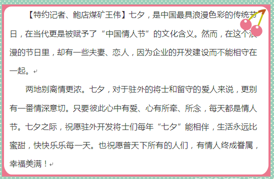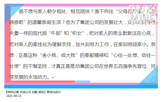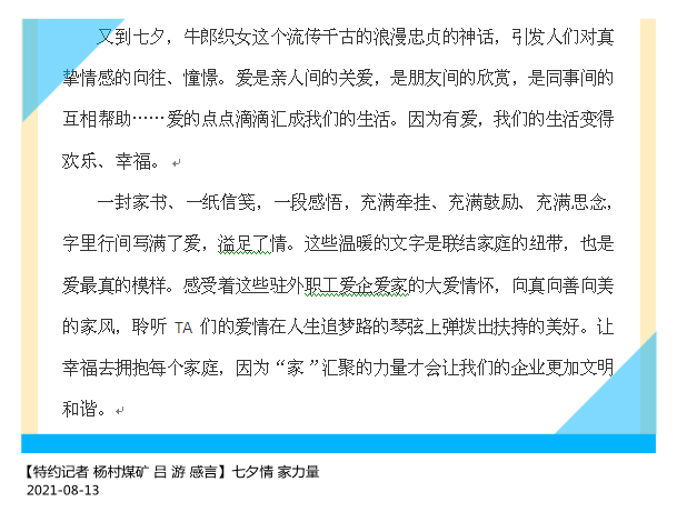 【解读者】榆林能化甲醇厂综合部(党群工作部)副部长 王玉霞“七夕”感言:浏览过从驻外到本部的真情告白,心里满满的都是温情,是祝福,是感动。