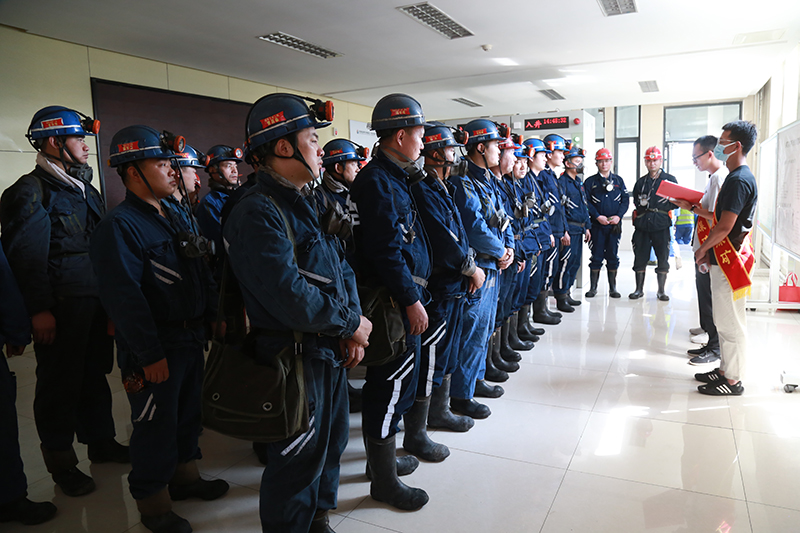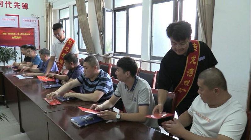 青年志愿者们走区队、进班组,把能源集团“团结一致向前看 凝心聚力谋发展”主题教育的重要意义和最新的改革发展工作会议精神传达到班组的每一位职工,并为在座职工送上了平安鞋垫。