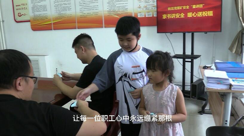 转龙湾煤矿综采工区的学习会议里传来了朗读安全家书的稚嫩童声。结合当前党史学习教育和“团结一致向前看,凝心聚力谋发展”主题教育活动的要求,该矿将安全“童讲团”融入安全宣讲,组织工区里暑期来矿探亲的小朋友开展家书讲安全、暖心送祝福活动,孩子们满怀深情,用稚嫩的童声给区队职工朗读了他们写给爸爸的安全家书,嘱咐下井的爸爸和矿工叔叔们一定要牢记“安全是全家人最大的幸福”。