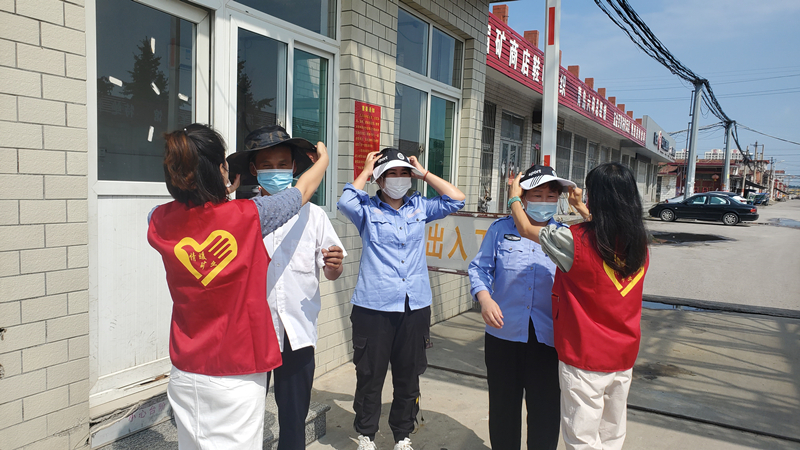 源源不断的爱心送清凉活动,在八月份持续进行,回眸那些从初夏到立秋的温馨清凉一瞬,网站制作推出了【关注】《末伏,回眸那些爱心送清凉的瞬间》,图为南屯矿暖心志愿者在为高温作业女职工佩戴遮阳帽。(朱宇婷 孙 扬)