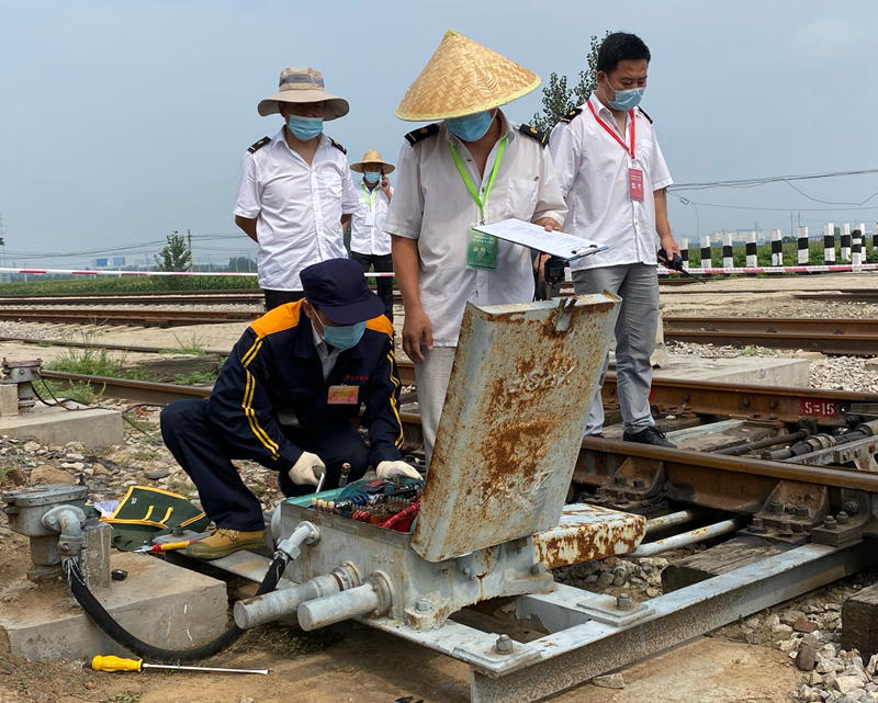“劳动防护用品穿戴整齐,工具仪表准备齐全,13号道岔要点登记......5号选手申请考试开始”。您现在看到的一幕来自8月10日铁运处信号安装工技术比武实作考场现场。这次比武共有包括国际焦化运输部7人在内的91名信号安装工参与其中。考试采取理论与实作相结合的方式,理论考题范围涵盖信号机、电动转辙机、轨道电路、智能电源屏等设备的相关工作原理及作业内容,是对参赛人员理论知识的一次全面检测。