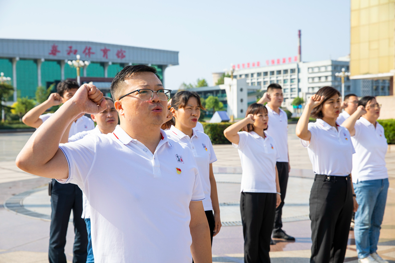 10月1日清晨,荣信化工公司升国旗仪式刚结束,6位职工从整齐的队伍中走出来,共同唱响《我和我的祖国》,现场的200多名职工自发跟着伴奏合唱起来,大家边唱边挥动手中鲜艳的五星红旗,用“升旗+快闪”的方式向伟大祖国深情告白。该公司还举办乒乓球比赛、拔河比赛等“庆国庆”系列活动。(黄春景)