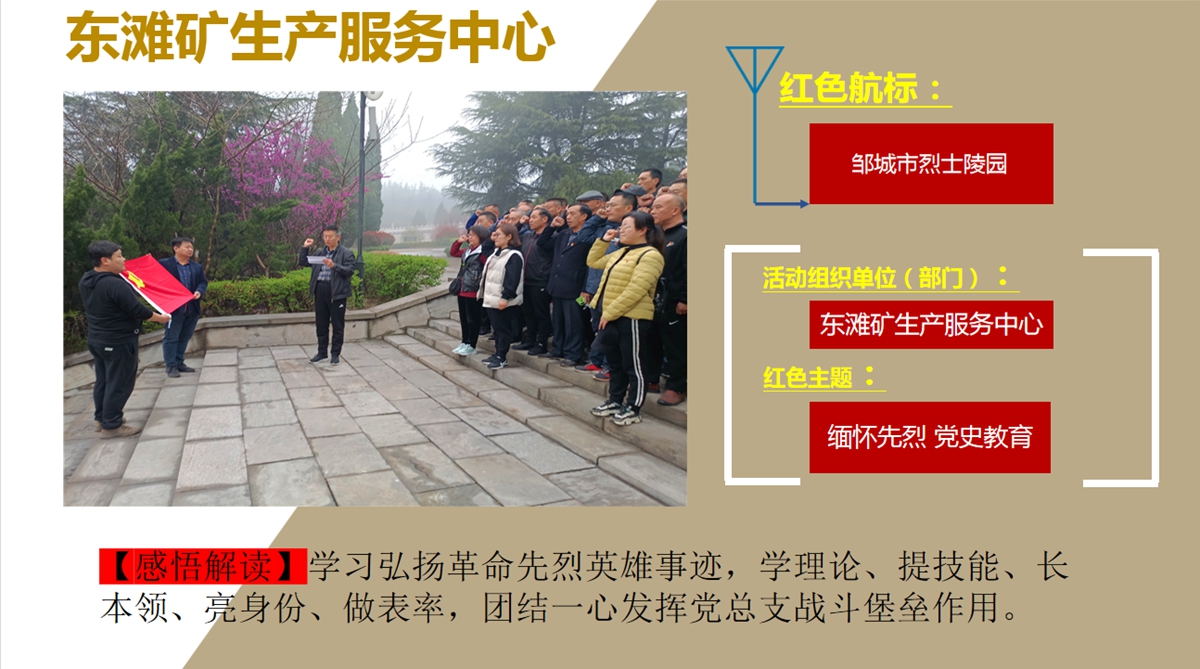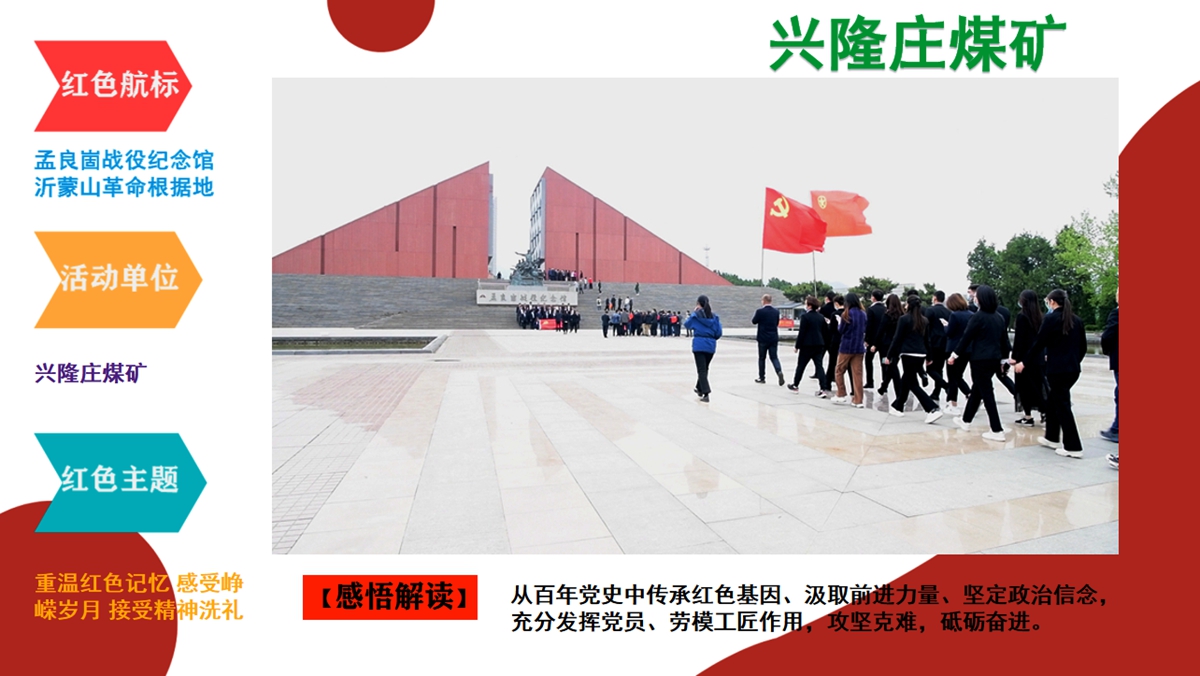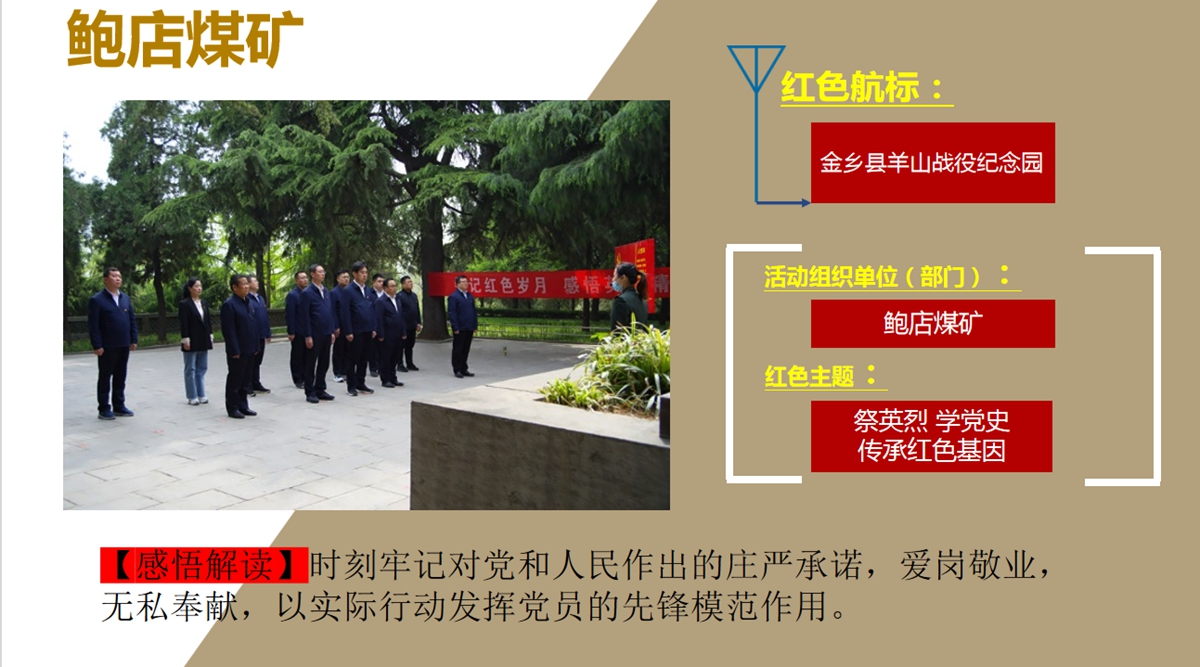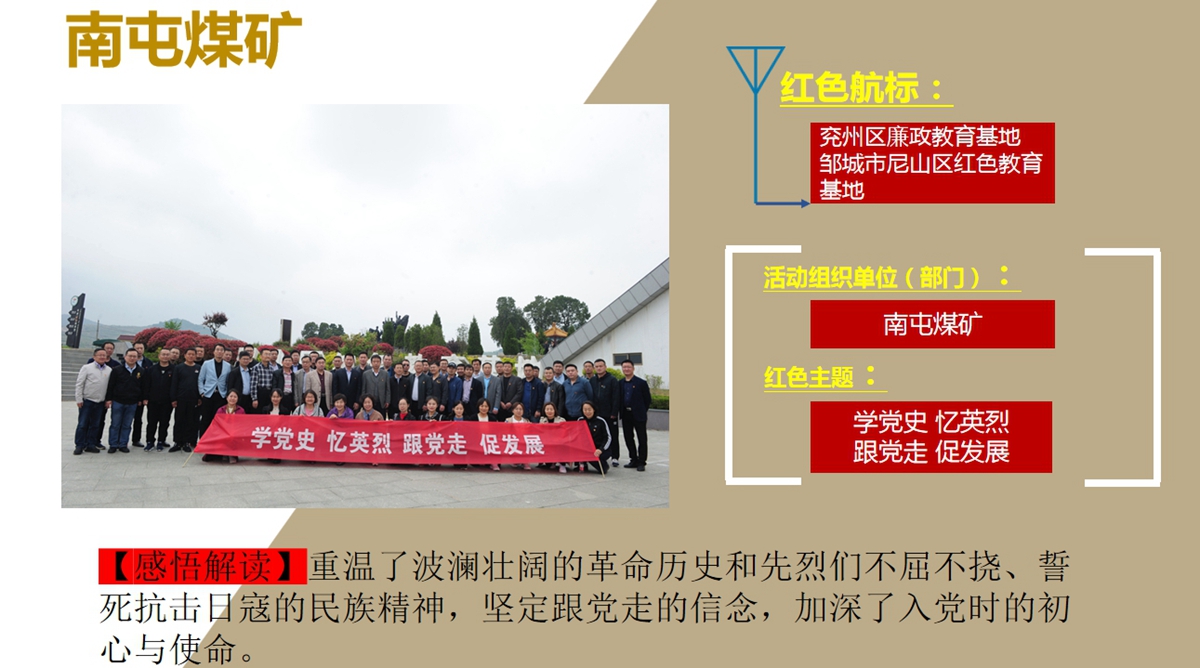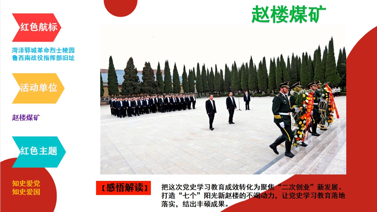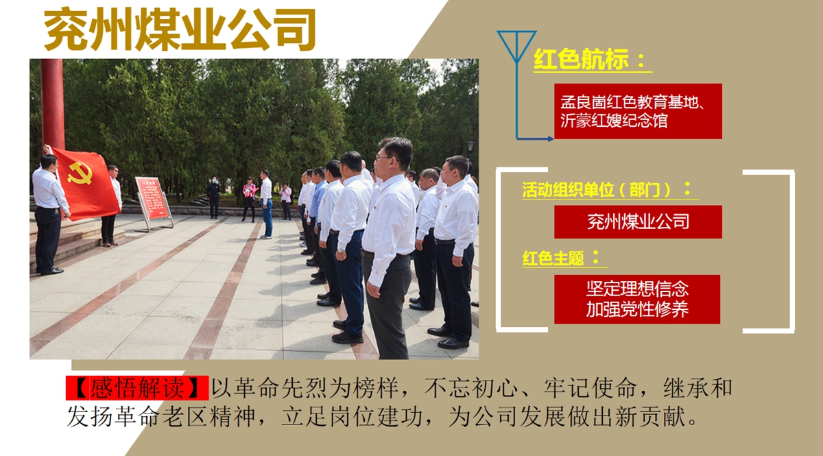回眸2021,兖州煤业自3月17日召开党史学习教育动员大会以来,要求公司各级组织全面贯彻落实中央、省委、省国资委及能源集团党委关于党史学习教育部署,以扎实有效的举措、求真务实的作风,高标准高质量开展党史学习教育。组织和带动各基层单位认真学习贯彻落实会议精神,通过到红色精神教育基地和烈士纪念馆进行红色教育,引导广大党员干部职工群众“学史明理 学史增信 学史崇德 学史力行”,把党的历史学习好、总结好,把党的成功经验传承好、发扬好,从党的百年伟大奋斗历程中汲取前进的智慧和力量,学党史、悟思想、办实事、开新局,深入推进党史学习教育走深走实,奋力谱写新时代各项工作新篇章!