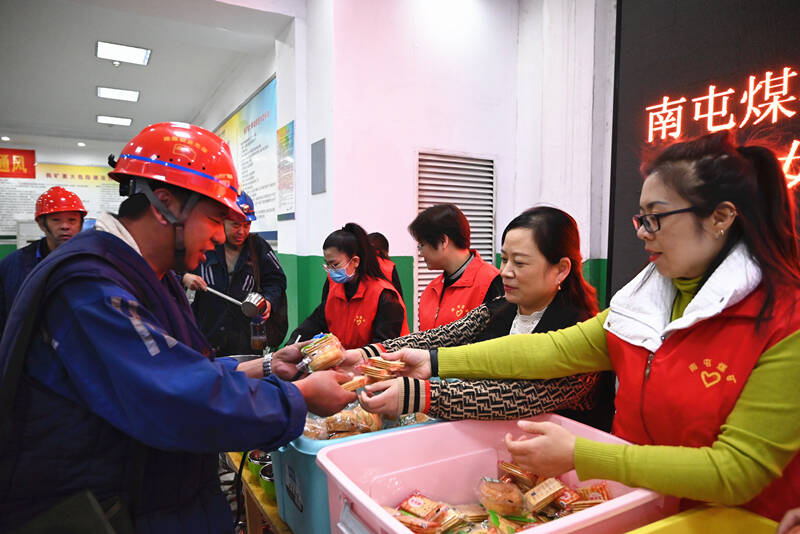 “师傅辛苦了”“师傅,井下作业注意安全”……在该矿井口候罐室里,伴随着声声叮嘱,女工协管员们将刚刚煮好的红枣姜汤、枸杞水以及饼干、面包等精心准备的慰问品送到矿工师傅的手中,叮嘱他们一定要遵章作业,牢记安全。