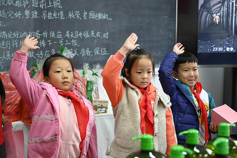 “矿工叔叔们,您们的安全牵引着无数人的心,在工作的时候一定要注意安全、按章作业、遵守规章制度,还要自主保安,千万不要违章作业,您们的安全就是我们的幸福!”