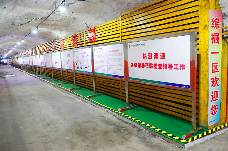 在该矿综采二区6306工作面,从物料码放、管线吊挂、卫生清理、积水排放、设备刷漆、标识设置等整个生产闭环路线,落实精细化施工,以“三直两平一净两畅通”标准严把工程质量“毫米关”。