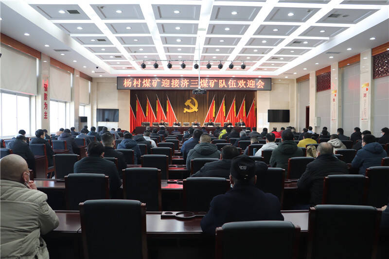 元月1日,杨村矿举办欢迎会,热烈欢迎济三矿采掘专业前来支援生产建设的77名职工兄弟。