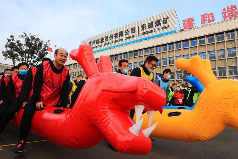 升旗仪式结束后,各基层支部的40余支男女代表队齐聚一堂,举行旱地龙舟比赛,为新的一年鼓劲加油。一条条龙舟象征着凝心聚力的饱满斗志,象征着奋勇争先的昂扬精神。一旁的呐喊声、助威声此起彼伏,展现了矿区职工团结协作、积极向上的精神风貌。大家纷纷表示,将把比赛中凝聚的干劲用到实际工作中,加满油,把稳舵,鼓足劲,创造东滩煤矿更加辉煌的新业绩。