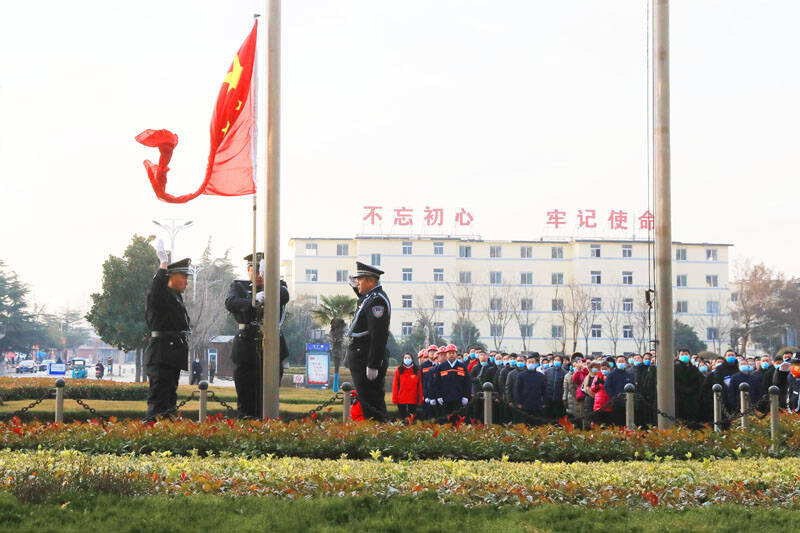 1月1日,东滩煤矿举行升旗仪式,以崭新的姿态迎接2022年的到来。