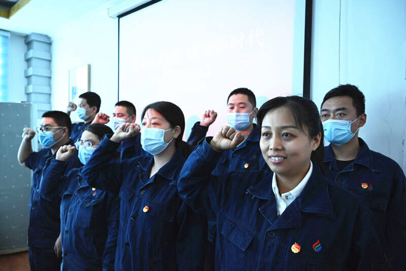 活动中,全体共青团员佩戴团徽,由该单位团总支书记领誓,重温入团誓词,共同奏唱团歌,在铿锵有力的宣誓当中,展现出了团员青年奋发有为、昂扬向上、勇于担当的精神面貌和人生追求。熟悉又庄严的誓词提醒着在场的每一位团员青年:以团员青年使命担当,为矿井发展贡献力量。