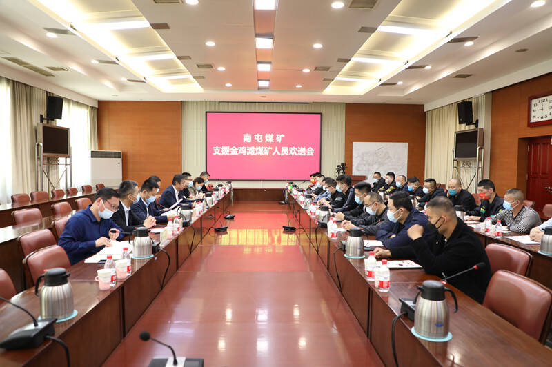 5月15日上午,南屯矿举办支援金鸡滩煤矿职工举办欢送会,热烈欢送20名职工奔赴金鸡滩煤矿工作。