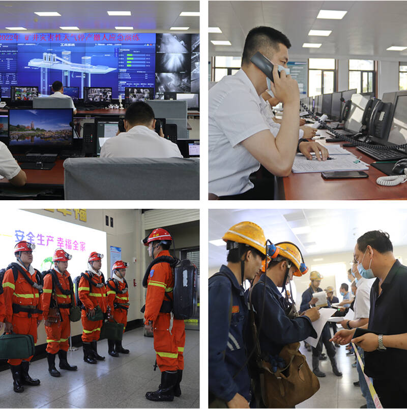 随着调度指挥中心工作人员的六遍语音广播群呼,“受灾”现场职工立即动身撤离,井口信号工、把钩工进入待命状态,救护队员快步赶往候罐室,巡堤人员紧急出动,各区队主要负责人来到井口等候逐一清点人员……