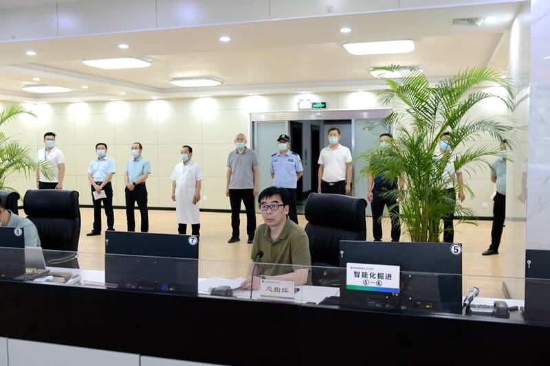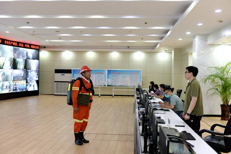 伴随着各项指令的下达,跟班矿领导带领救护救援队伍“第一时间”集结到位。14时50分,分管副总工程师带领救援组进入事故现场,确定火情,实施灭火。随即,瓦斯检查工、测风工检测瓦斯浓度、氧气浓度,结果显示为安全指标,工作面风量稳定,各类监控传感器示值正常。经现场工作组安全风险评估,工作面可以恢复正常生产。16时01分,演习总指挥宣布,火灾事故专项应急预案演练结束,矿井恢复正常安全生产。