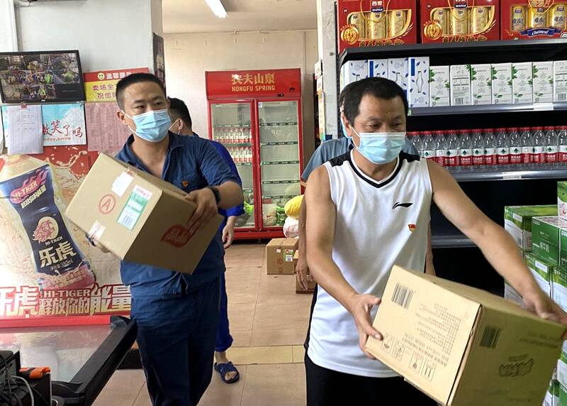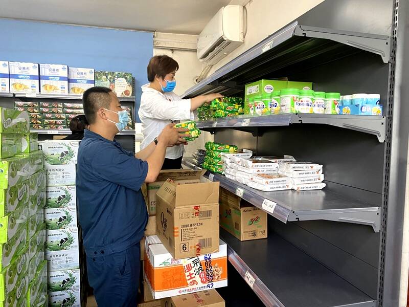 一大批职工生活货品到矿,后勤服务中心党总支迅速开展特别党日主题活动。党员干部齐上阵,十分钟时间,党员干部集结到位,所需的食品、饮料、调味料等分类摆放上架。
