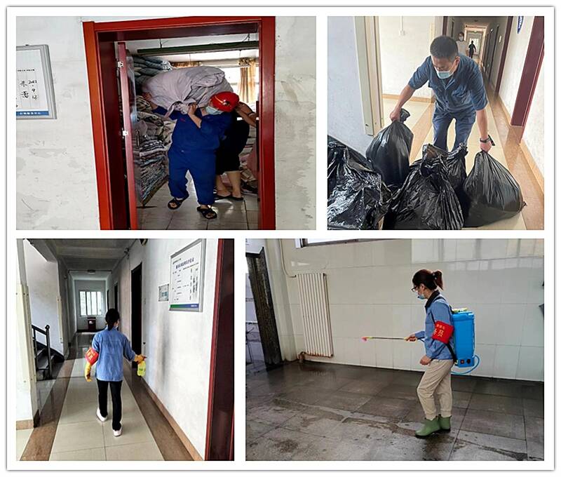 化身“管控员”“搬运工”“清洁工”。党员齐光兰身背十几斤床上用品,一车车送到洗衣房去洗涤,叠放整齐,准时发放。