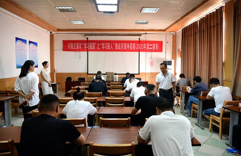 群英聚会互相学,比学赶帮共提高。7月20日,兴隆庄煤矿2023年第二季“学习强国”之“学习强人”挑战答题争霸赛清凉来袭。全矿各单位层层选拔出的“学习达人”分批在凉爽的考场内拿起手机参加比赛,以考促学,学史促行,悟初心增信念,激发担当干事活力。