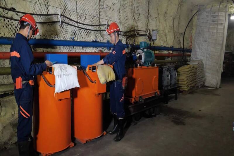 创新的道路上并非一片坦途。在前期测试阶段,囊袋的挂设,很容易被充填材料压落,宋海洲带领团队一次次的实验,不断在囊袋的四周加密吊点,加固囊袋挂设,确保最佳吊挂方案。囊袋充填时,使用的搅拌桶跟不上充填的速度,他们就使用两个搅拌桶接替供料,保证供料速度。发泡器的进风管容易被LFM材料堵住,他们就在发泡器上增加了逆止阀,防止了发泡器被堵塞。