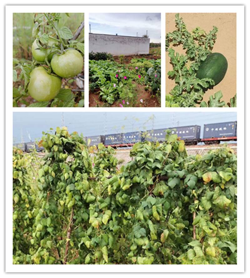 “我们身处毛乌素沙漠边缘,风沙早把土都吹跑了,只剩砂砾,种啥都不容易。大家伙找了个避风的地方,工余时间来这里刨地、锄石、运土,在这几十个平方里种上了向日葵、西红柿、小白菜,还点了几棵西瓜。”查汗淖集运站负责人介绍。