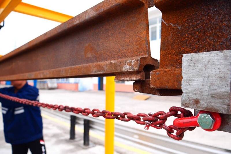 只见李正和工友三下五除二将自制的卡紧装置分别用螺栓安装于需合茬位置两端的轨道梁上,然后将由棘轮转动机构、对丝牵引机构和牵引链组成的对拉张紧装置两端分别固定在已安装好的卡紧装置上。