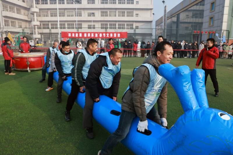 在接下来的“祥龙献瑞福满东滩”游园活动中,伴随着欢快的音乐、激昂的鼓点和一声声美好的新春祝福,广大干部职工神采飞扬,脸上洋溢着欢度新春的喜悦。猜灯谜、铲红包、套圈、趣味接“龙”、“龙行龘龘”旱龙舟比赛、福气“敲敲”来等一系列丰富多样的娱乐节目令到场职工、家属目不暇接,参与热情极度高涨。