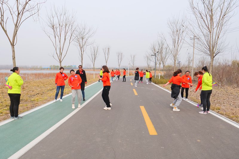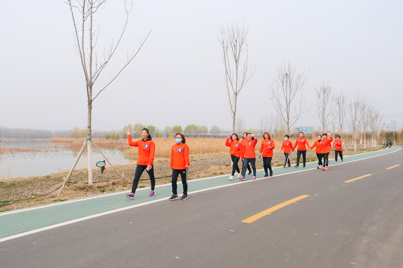徒步路线绕行济宁市高新区十里湖生态湿地公园环形跑道一周,一路上,女职工们以亲近自然、绿色出行为健康理念,展现了新时代女性的健康之美、激情之美、自信之美。伴着湿地公园的微风,每个人的脸上洋溢着快乐的笑容,欢声笑语充斥在耳畔,大家尽情享受着春意盎然的大自然美景,沿途美丽的景色,也不禁让大家感叹周边环境的巨大变化。