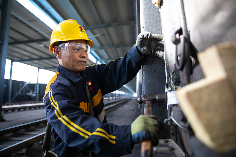 铁运处党群工作科科长张文黎告诉记者,这个面积为1400平方米的车间,每年往返修理的机车车厢达300多节。在智能化建设铿锵推进的新形势下,依然有不少繁重体力劳动与维修技能并行推进的工种,以铁运处为例,与庞大设备打交道的工种占90 %,很多一线工人岗位检维修工作集体力与技能于一体,人工作业与机械化操作交织进行,如何降低工人劳动强度,提高他们的安全系数和工作效率,让岗位价值发挥到最大化,这是肩负新时代新使命的兖煤铁运处领导班子和铁运人的共同目标,基于此,党员占比达100%的兖煤铁运处党员创新创效工作室进驻到了车间一线。