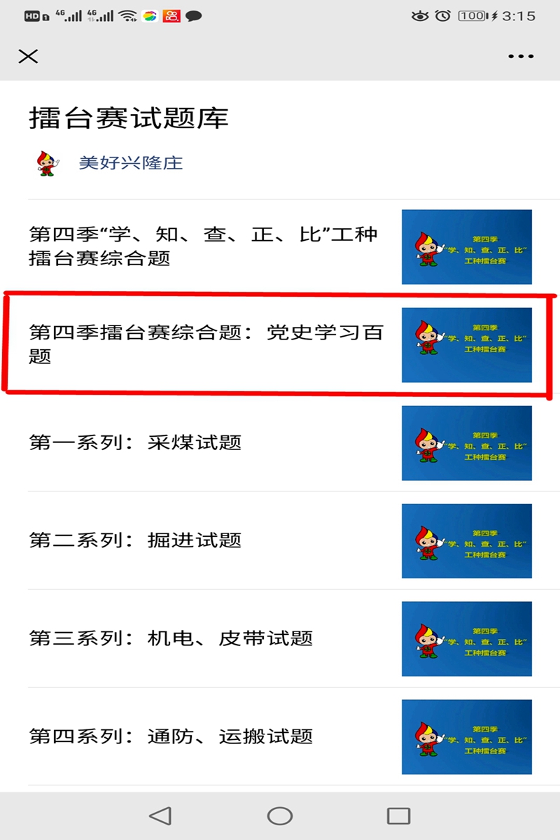 这个矿党员宋西忠,因为来回赶班不能及时收看“新闻联播”,现在通过专栏学习,主动在学深、悟透新思想上下功夫,经常和班组同事分享自己的学习经验。他说,“利用微信公众号擂台赛专栏学习,既能学到党史知识,又能提高岗位技能,真的是太好了,百年党史是奋斗路上的‘教科书’‘营养剂’‘清醒剂’,在今后的工作中,将更好地发挥党员模范带头作用,时刻做到安全生产,为集团公司和矿井发展奉献自己的一份力量!”