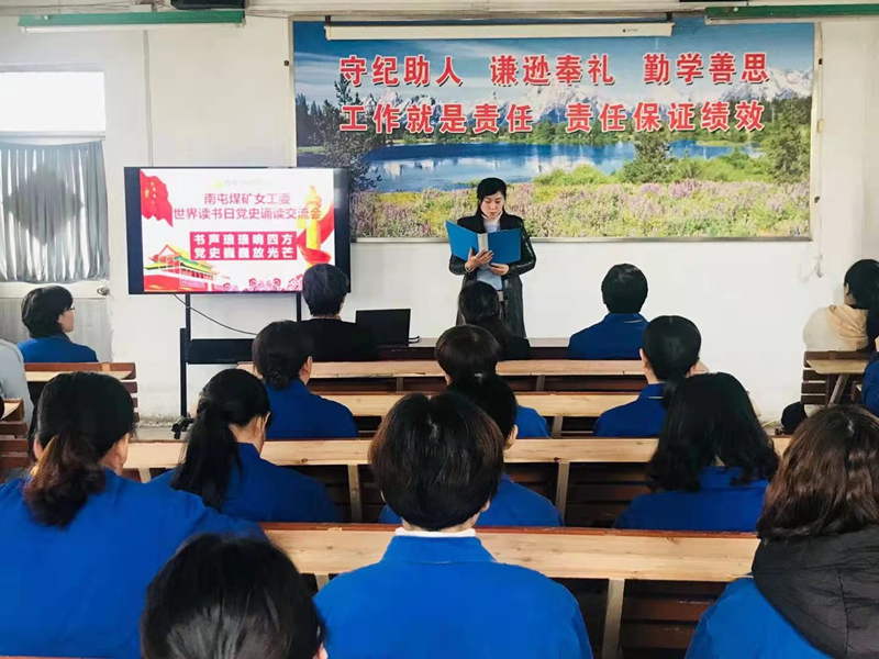 4月23日,是世界读书日。在为深入贯彻习近平总书记在党史学习教育动员大会上的重要讲话,引导女职工学党史、悟思想、办实事、开新局,推动矿区党史学习教育常态化。南屯矿女工委开展“书声琅琅响四方,党史巍巍放光芒”女职工党史诵读交流会活动。